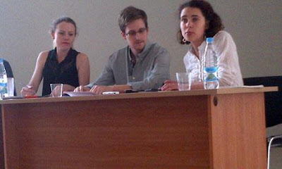 Tanya Lokshina van Human Rights Watch heeft verslag gedaan van haar meeting met Snowden over zijn kansen om asiel te krijgen in Rusland. Check @TanyaLokshina op zoekterm #Snowden Lokshina: “Hij zegt dat hij uiteindelijk naar Zuid-Amerika wil, maar dat hij voorlopig asiel nodig heeft hier in Rusland“. Snowden heeft de aanwezigen het volgende gevraagd: om Poetins steun te vragen bij het aanvragen van zijn asielaanvraag en om de VS en de EU te vragen hem vrij te laten in zijn bewegingen.