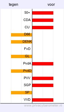 * In de figuur is de stemming weergegeven zoals partijen in de Tweede Kamer hebben gestemd over deze wet. Als er geen balkje bij een partij staat, bestond de partij nog niet ten tijde van de stemming